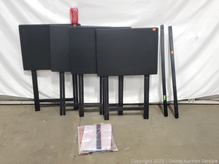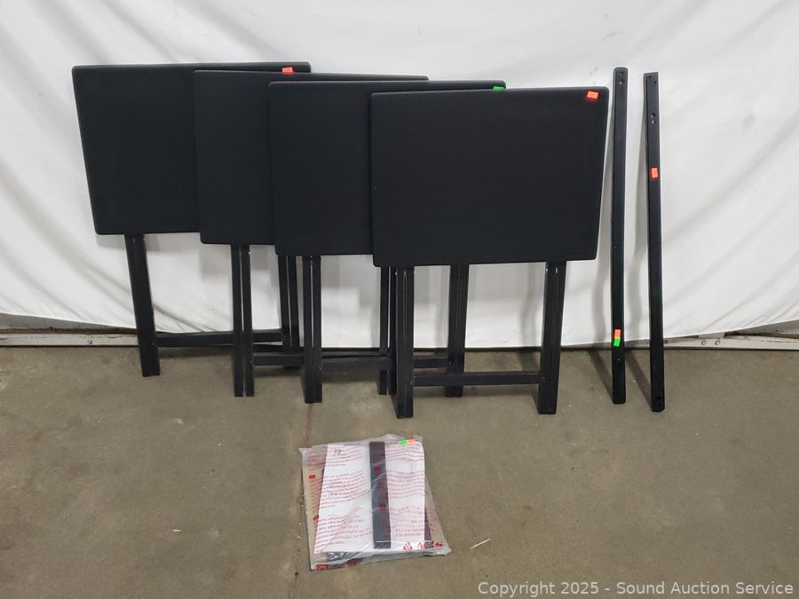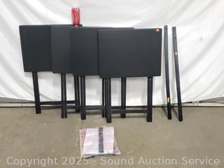 Stand is not assembled, appears complete. 26.5" H x 19" x 14.5" trays. All in great condition.