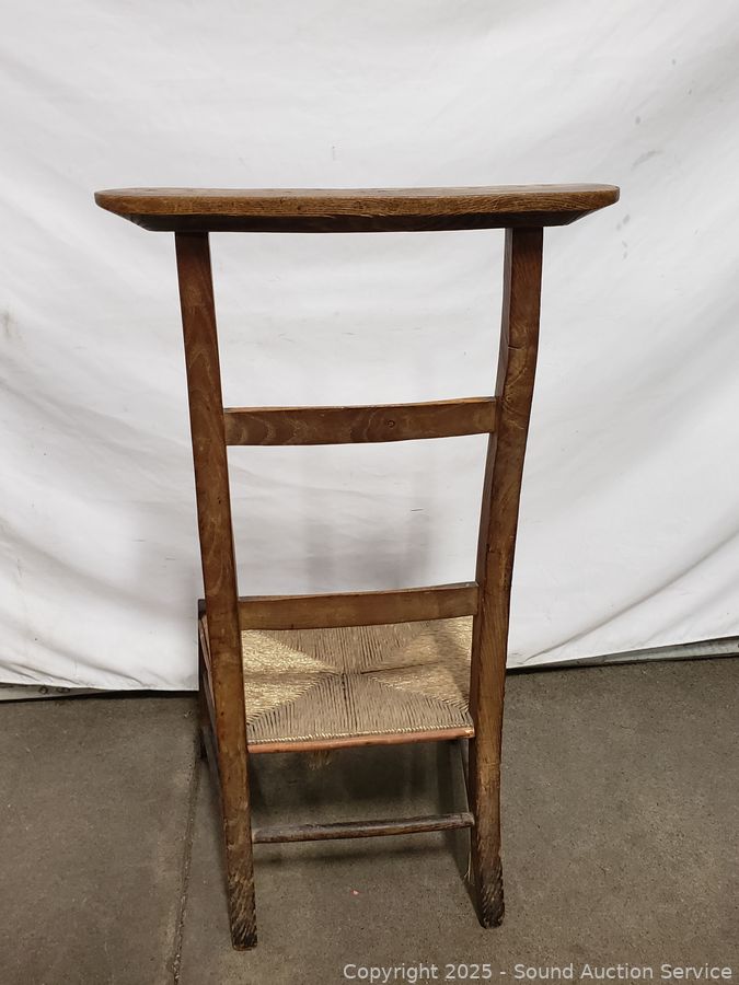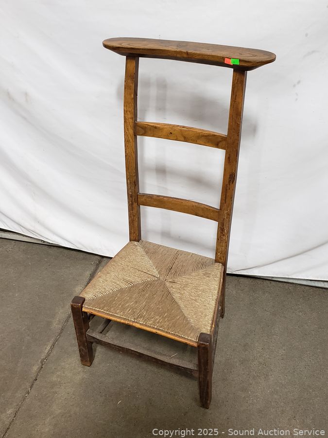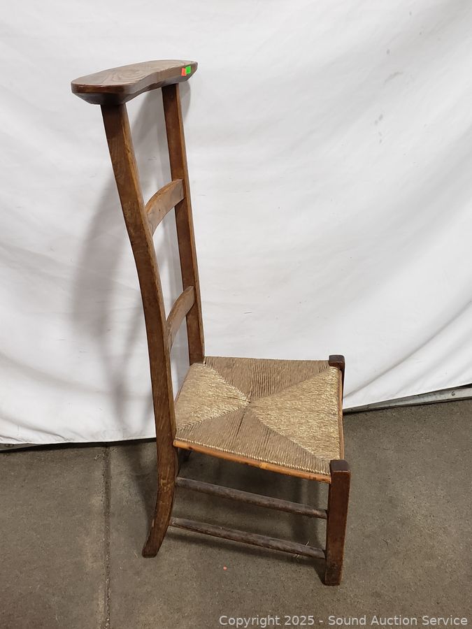 Lot #0066: Antique 19th Century French Prie Dieu? Rush Woven Kneeling Prayer Chair
