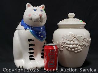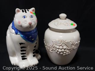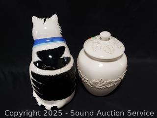Lot #0154: Coco Cowley Cat & Ivory Stonelite Cookie Jar