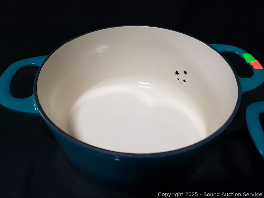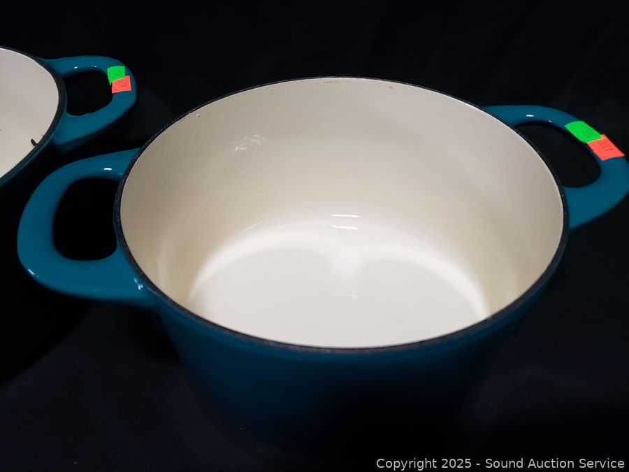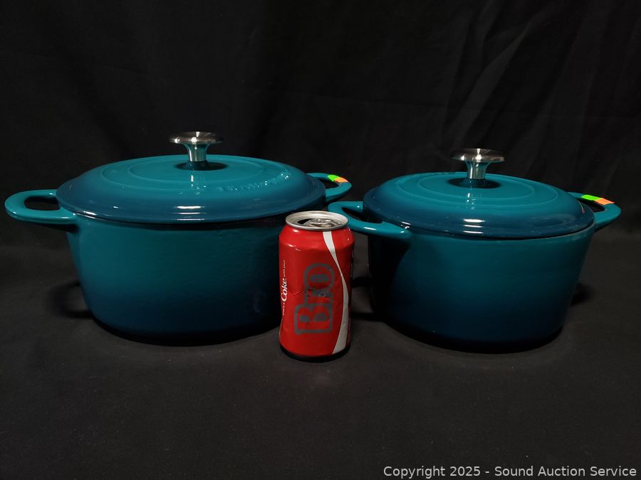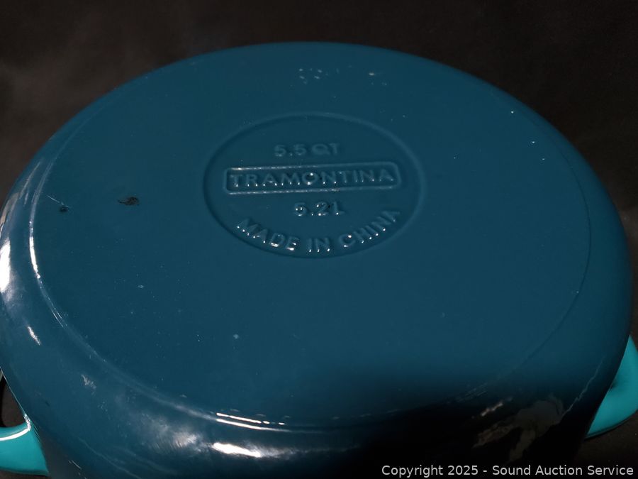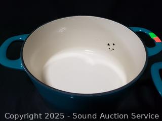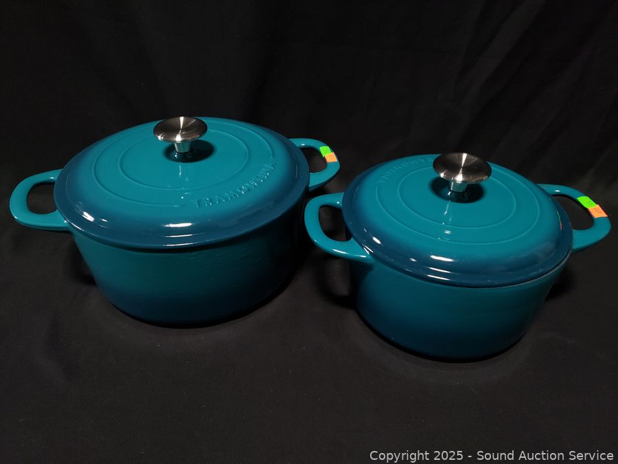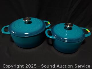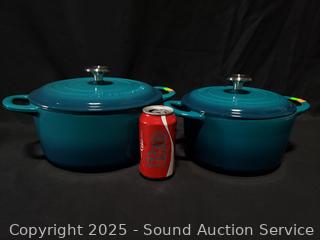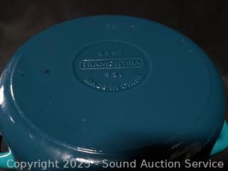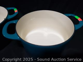 Lot #0345: Tramontina 3.5qt & 5.5qt Turquoise Cast-Iron Enamel Dutch Ovens