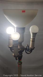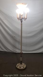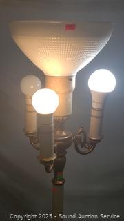 Top center bulb takes a mogul base bulb, the rest are standard sockets. Various wear to finish. 62" H x 9.75" Dia. shade.