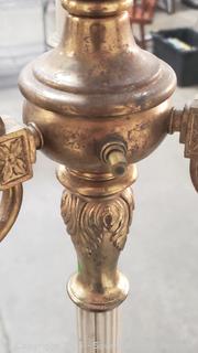 Lot #0116: Vintage Brass 4 Light Ivory & Gold Finish Floor Lamps