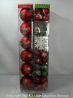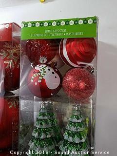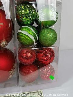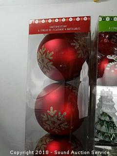 Includes: 6-pack of 5" diameter bulbs, and a 52-pack of smaller ornaments. Refer to photos for more information.