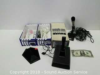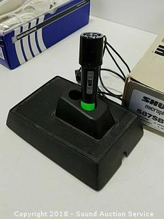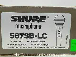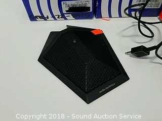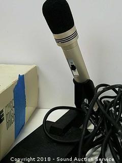 Includes: Shure Microphone 587SB-LC with box, Piezo DX263 Microphone, Audio Technica Undirectional Condenser Boundary Microphone AT871R (missing power cable), (2) Beyerdynamic SHM 22 H US Microphones with boxes, and a Sanyo Microphone. Please refer to photos for more information.