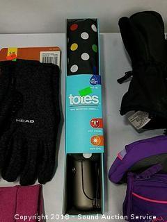 Lot #0238: (6) Pairs Small & Medium Gloves & Totes Umbrella