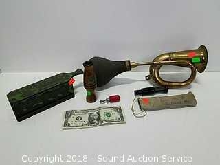 Lot #0014: Antique Brass Car Horn & Game Calls