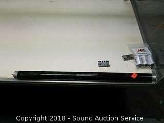 Comes with fluorescent and black light bulbs, and extra lighting regents. Only has one mirrored sliding door. Approx. 41" tall, 60" long, and 20" deep.