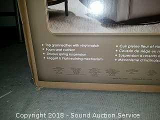Top grain leather with vinyl match. Foam seat cushions, sinuous spring suspension, leggett and platt reclining mechanism. By Synergy Home Furnishings. Refer to photos for more information.
