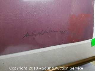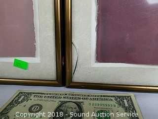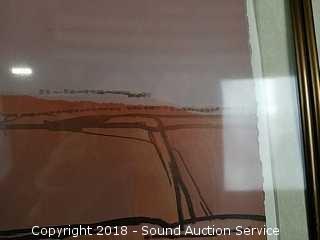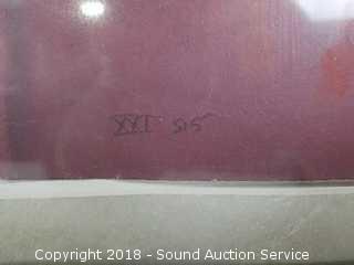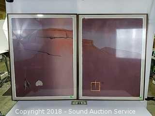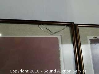 Refer to photos fro signature. Titled "XXI115" & "IV315". Each one has a break in the glass. Approx. 25-1/2" x 33".