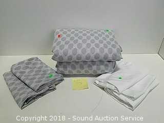 Includes: (4) king size pillowcases, (1) fitted, and (1) flat.