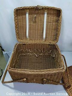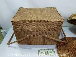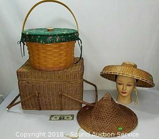 Lot #0152: Wicker Woven Picnic Baskets & Oriental Sun Hats