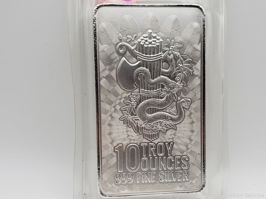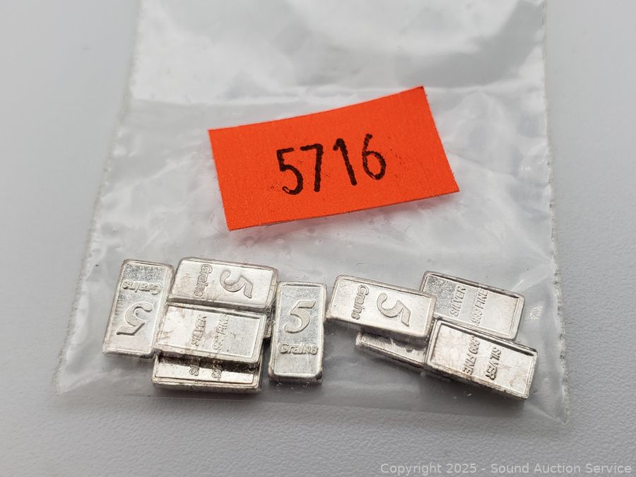 Lot #0050: 10oz .999 Fine Silver Bar & (10) 5 Grain Silver Bars