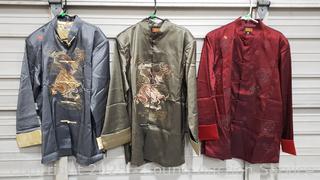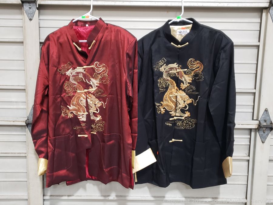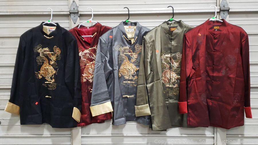 Lot #0254: 5 Traditional Chinese Silk/Satin? Embroidered Dragon Han Jacket S:XXL