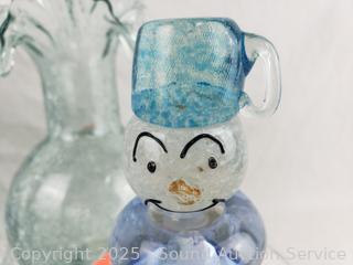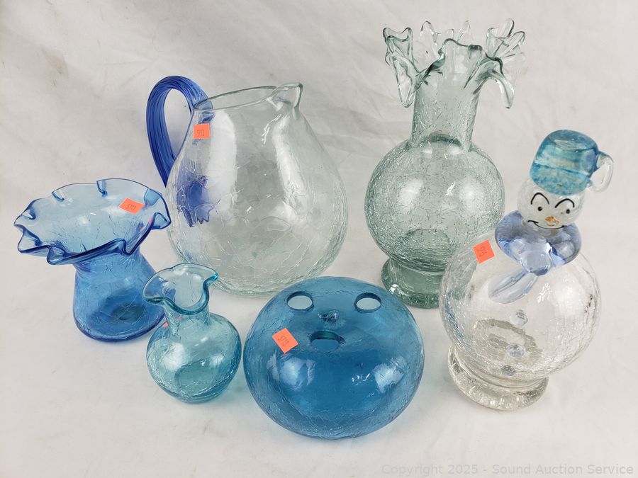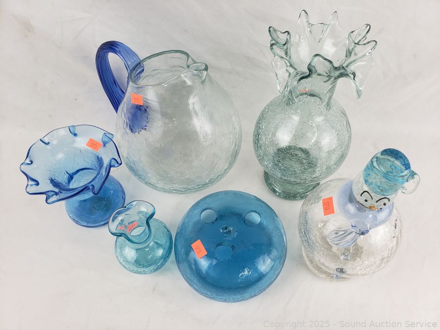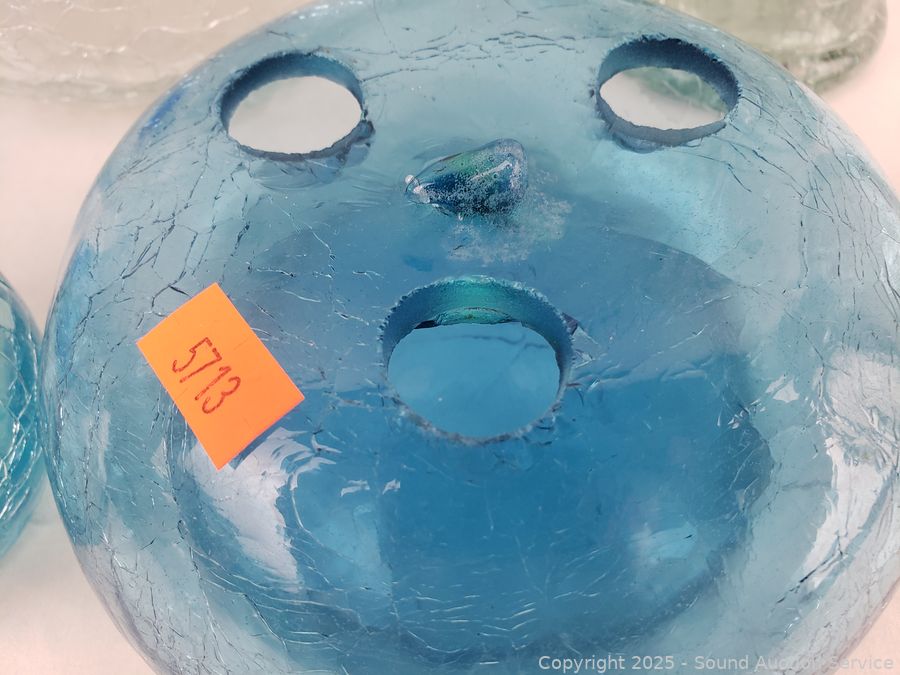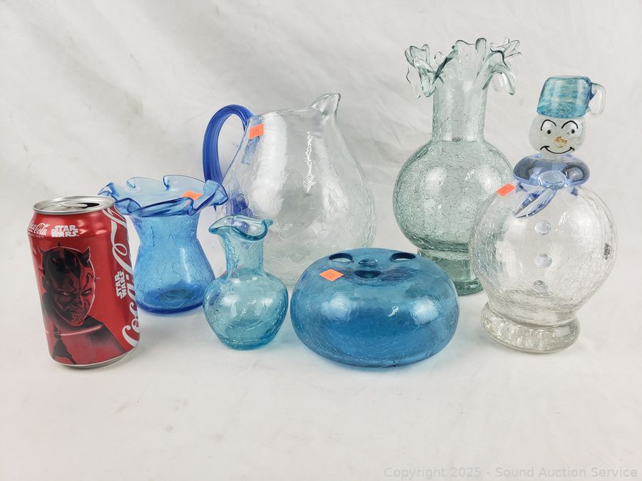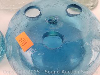 Lot #0126: 6pc Aquamarine Crackle Glass Decor