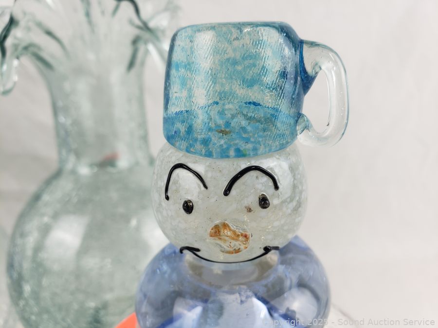 Bottle, flower frog, vases, pitcher. Don't see any issues. 2.75" to 9.5" H x 2.75" to 7" Dia. Don't see any issues.