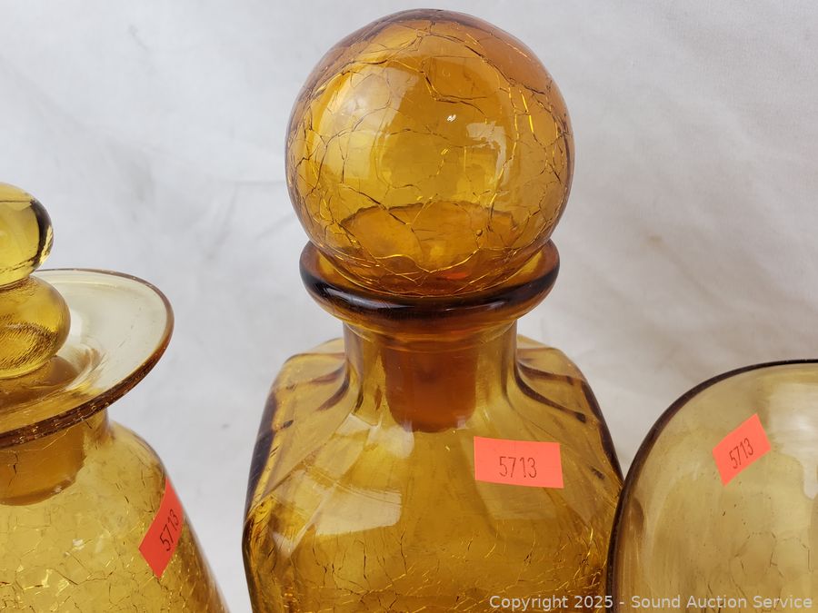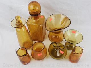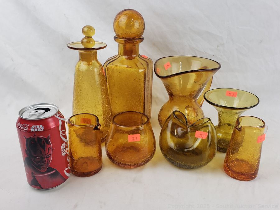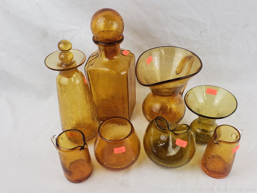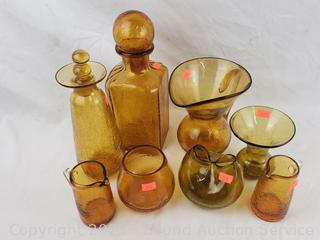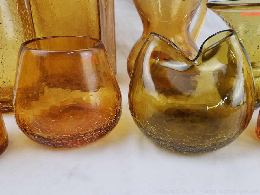 Lot #0150: 8pc Marigold Crackle Glass Decor