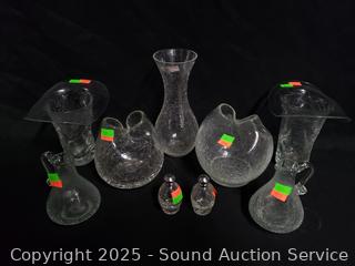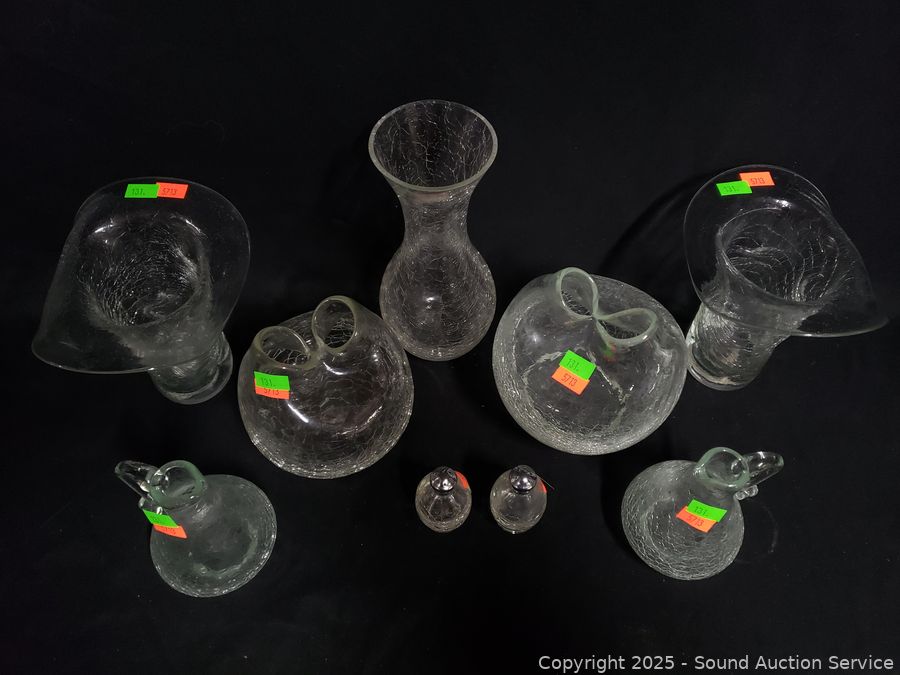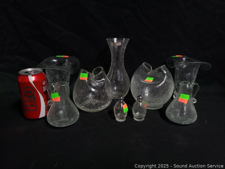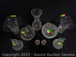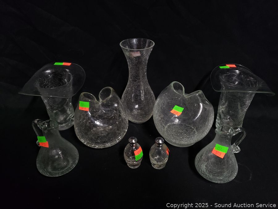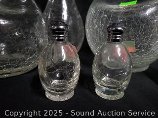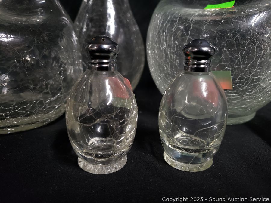 Salt & pepper, vases, cruets, etc. Approx. 2.75" to 7.5" Dia. x 1.5" to 5.5" Dia.