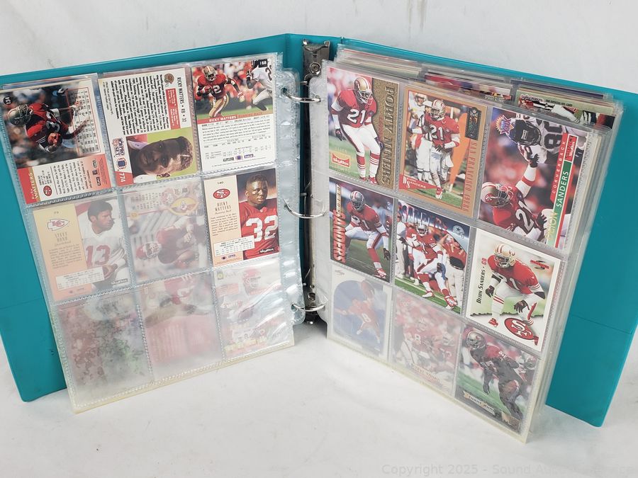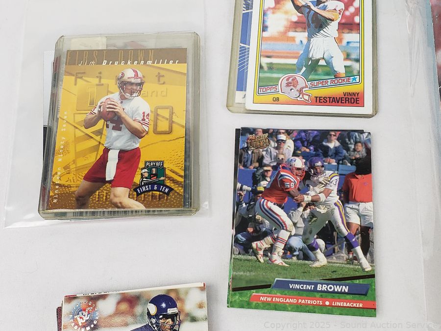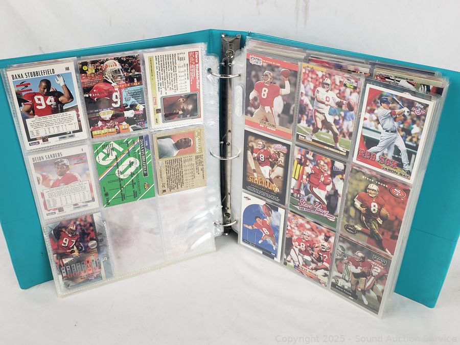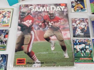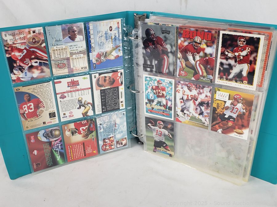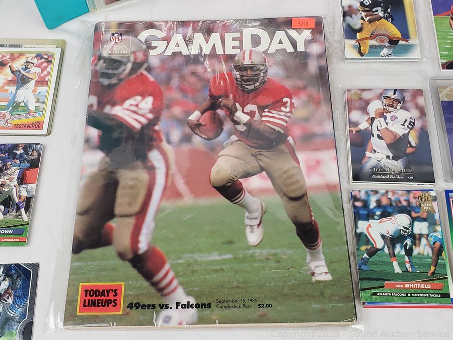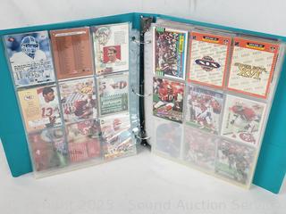 Lot #0182: Album Full of Football Trading Cars, Some Loose Cards & Magazine