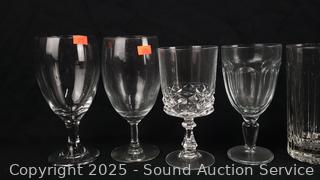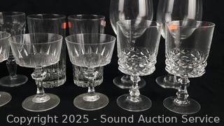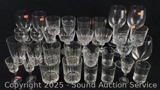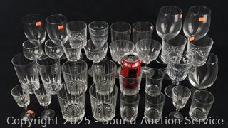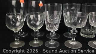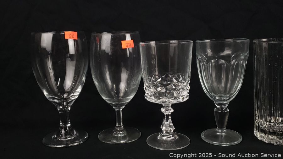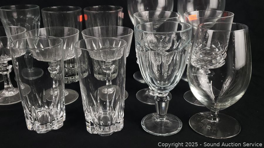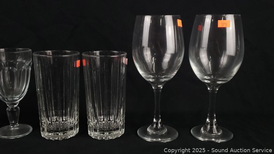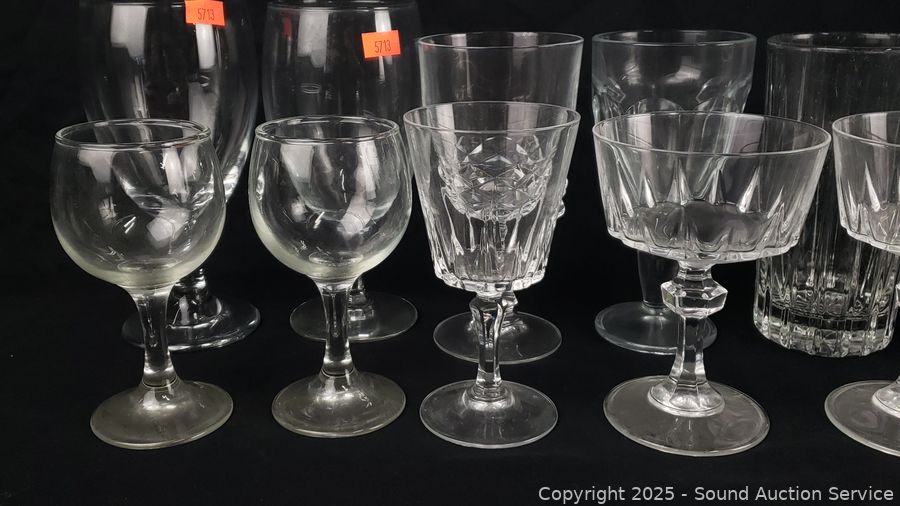 Cordials, highball glass, red/white wines, brandy snifters, dessert dishes, etc. Refer to photos for lot contents, more details.