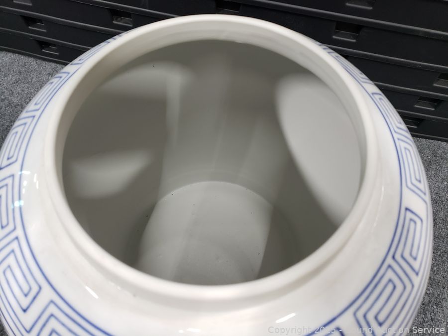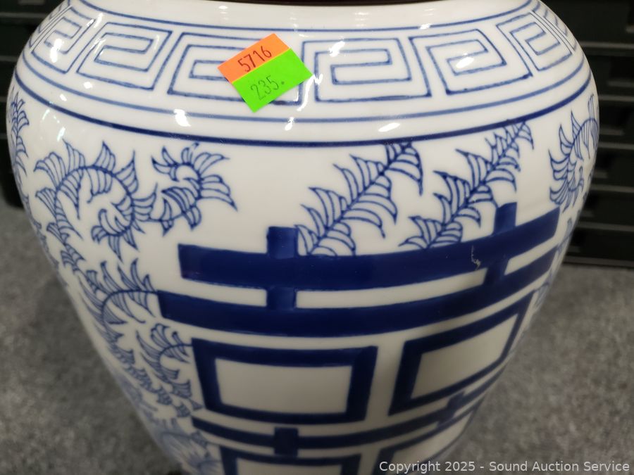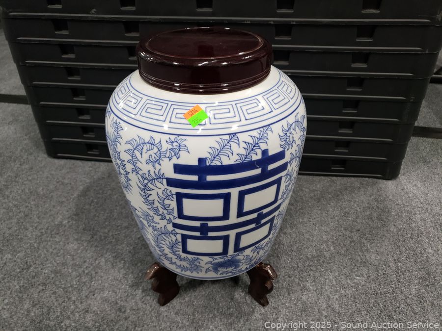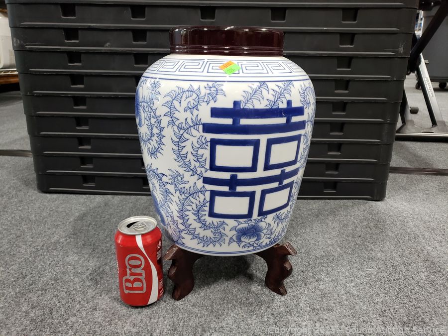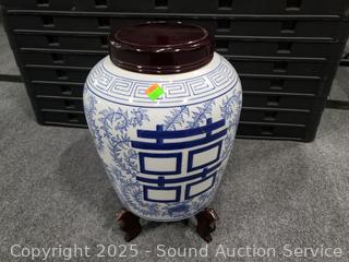 Lot #0235: Chinese Porcelain Urn w/Wood Lid & Stand