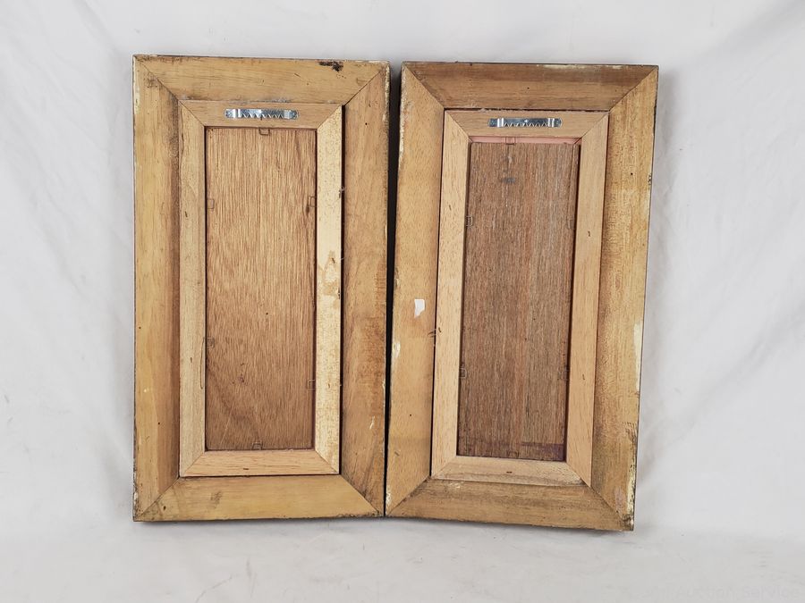 Painting are signed Robert Cox, gold gilt framed, 10.5" x 17.5". 16" x 11" tins. 5" to 8.5" H x 8" to 12" L x 4.5" to 7" W wire baskets.