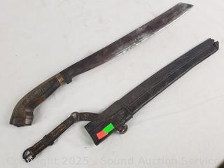 Lot #0197: Vintage Handcrafted Machete w/Sheathe