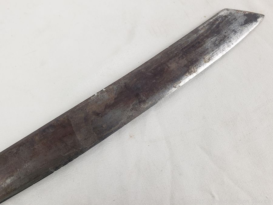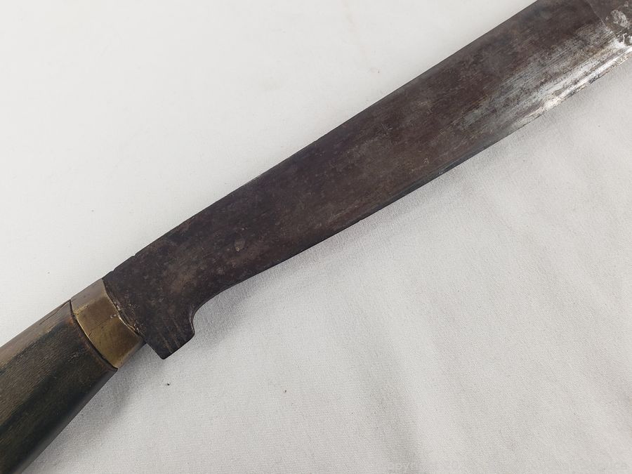 19" overall length, 14" blade. Various wear from age, use, cracked handle.