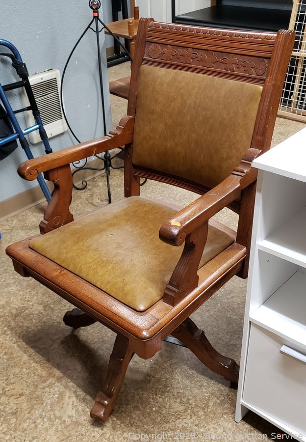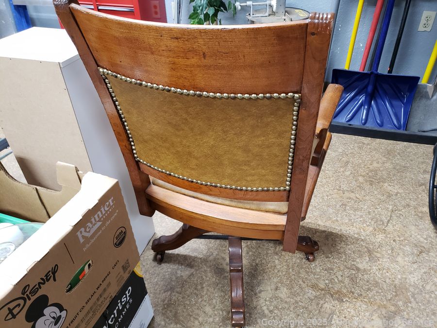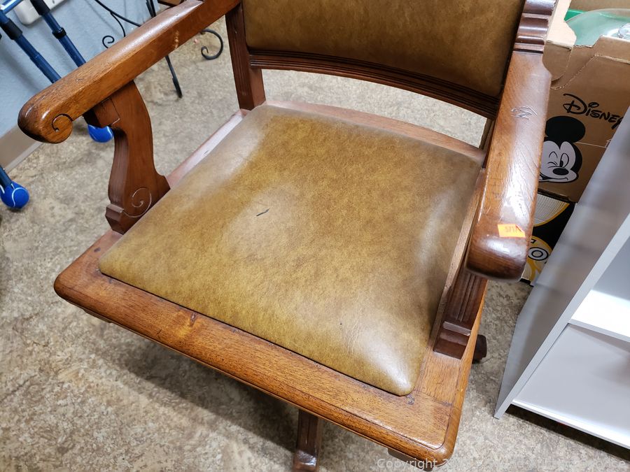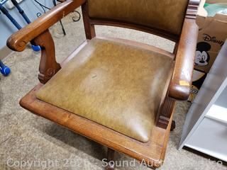 Lot #0089: Vintage Oak Rolling Swivel Office Chair