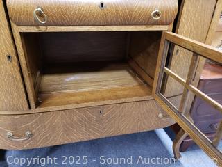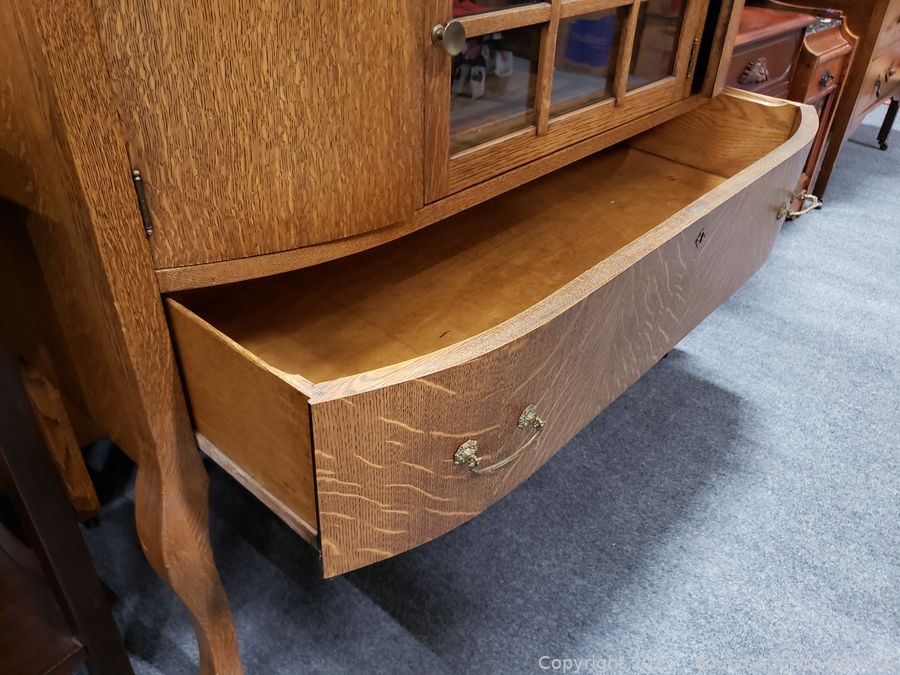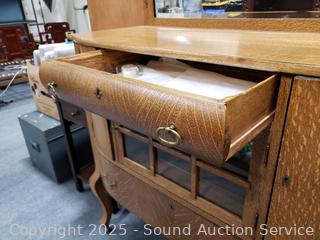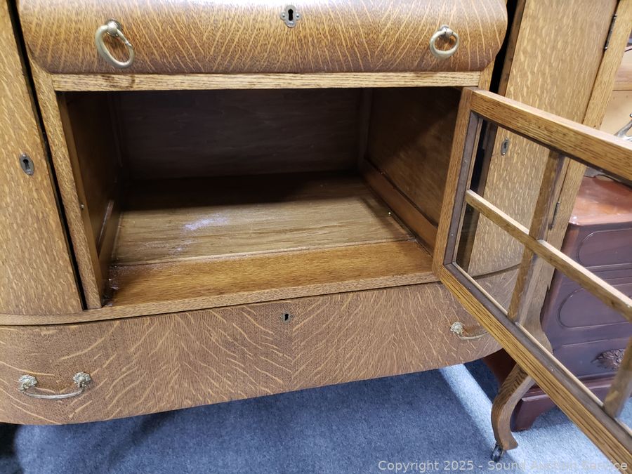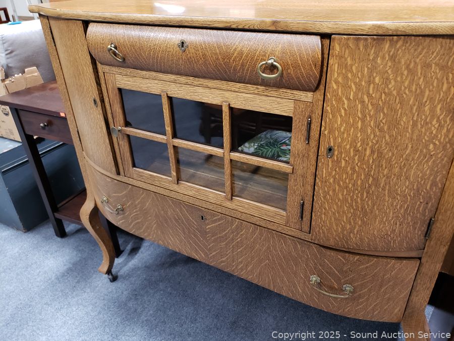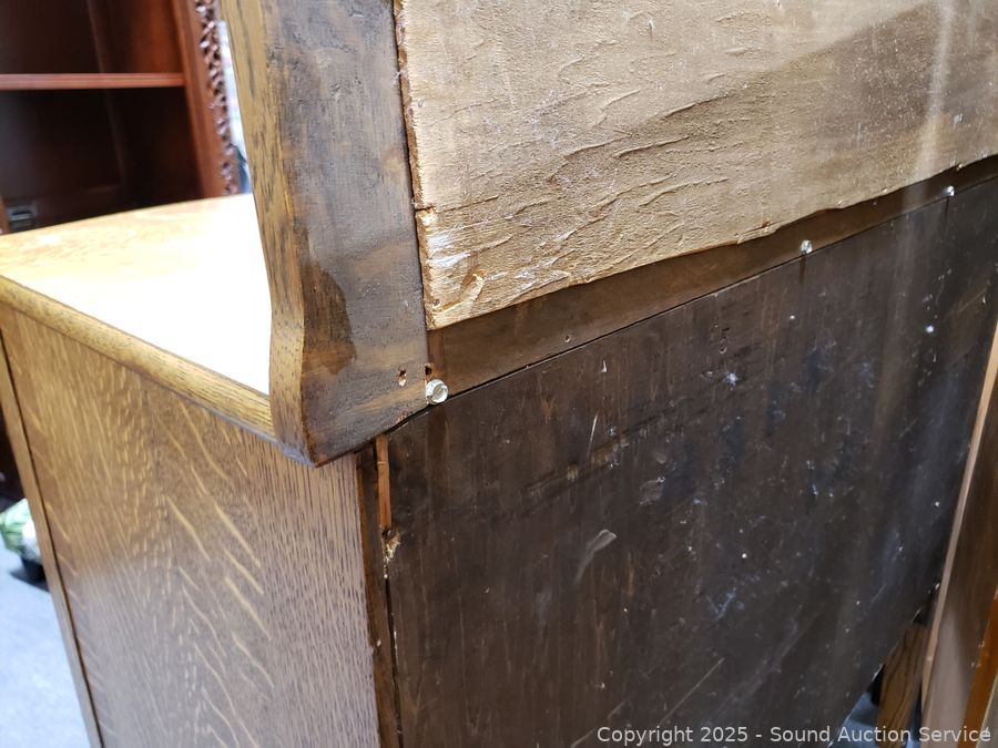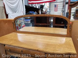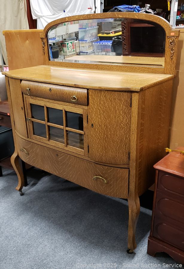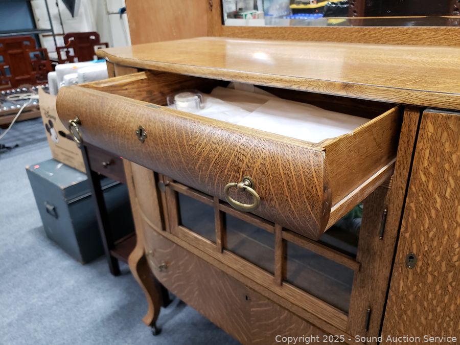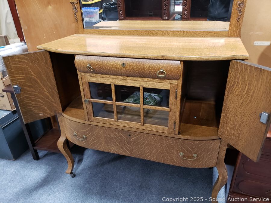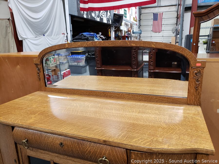 Lot #0016: Vintage Quartersawn Oak Mirrored Sideboard Buffet