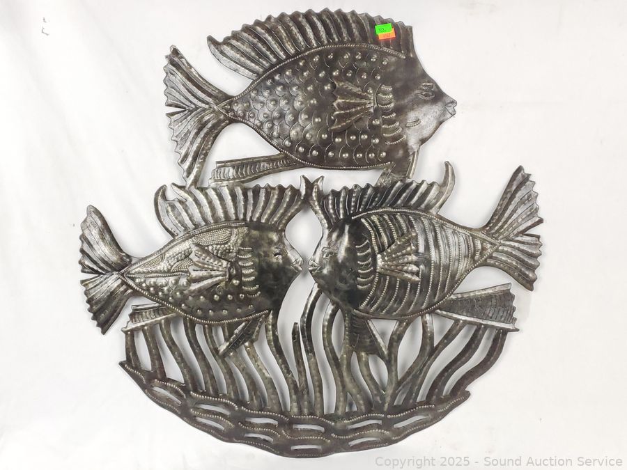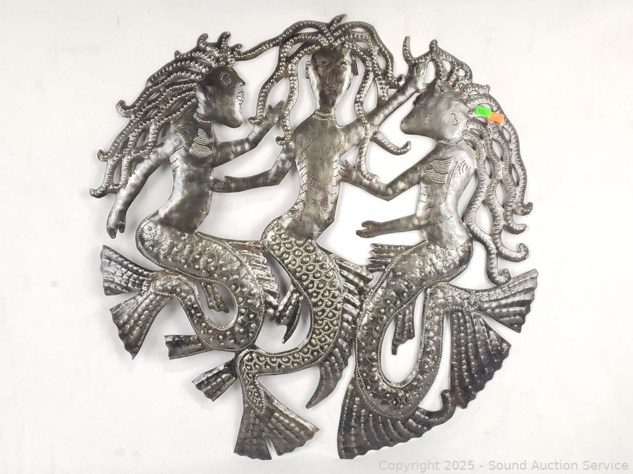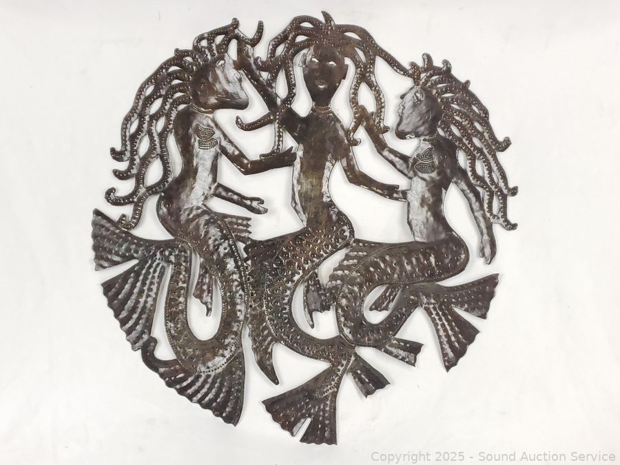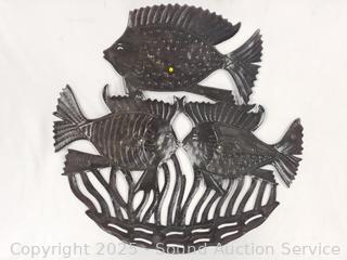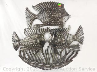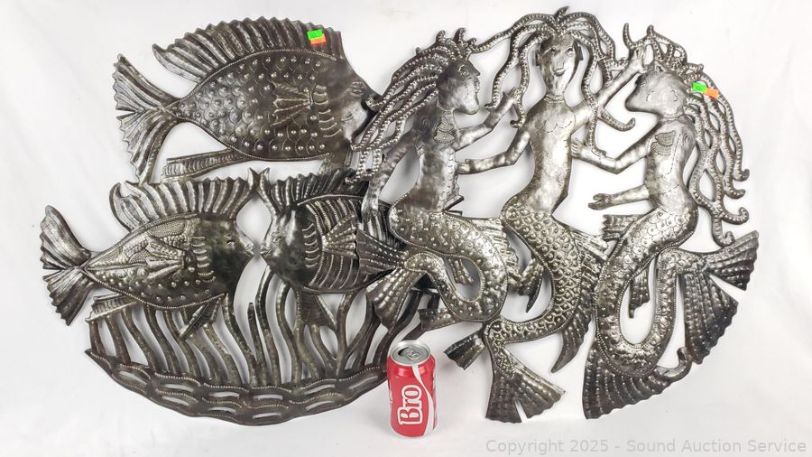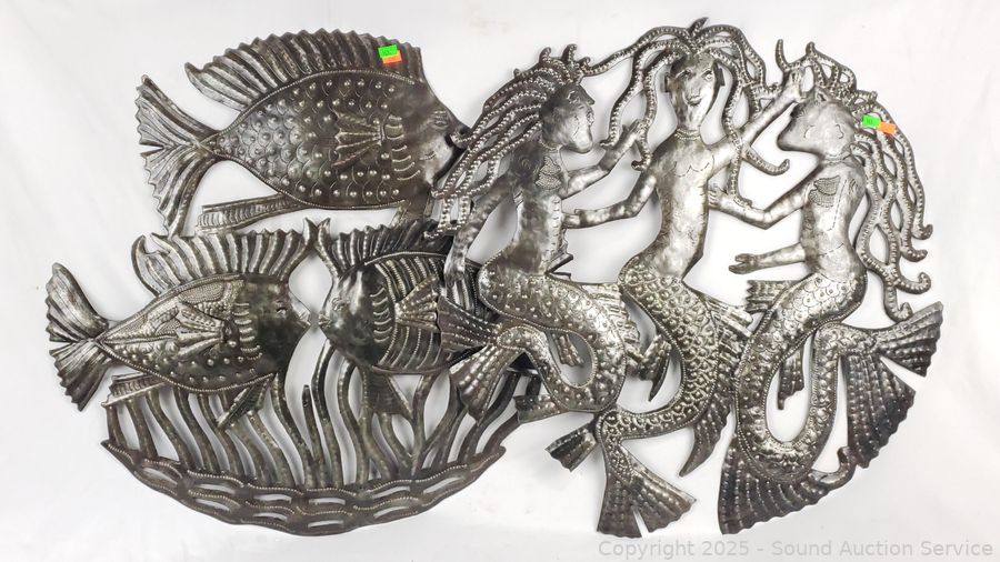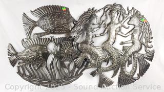 Lot #0163: 2pc Metal Art Fish & Mermaid Wall Decor