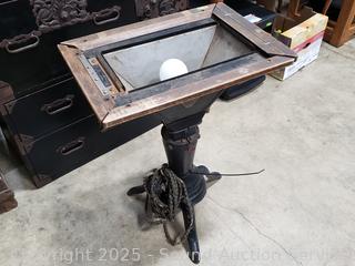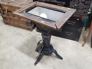 Was an illuminated drawing board used for creating stencils for mimeograph machines. Untested. 29.5" H x 21" x 15".