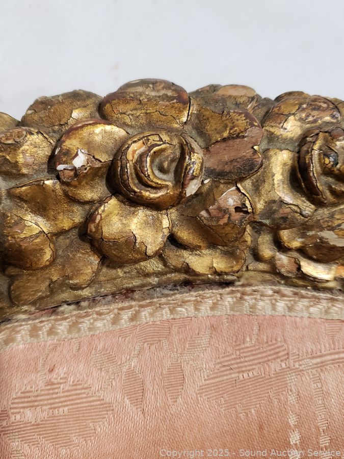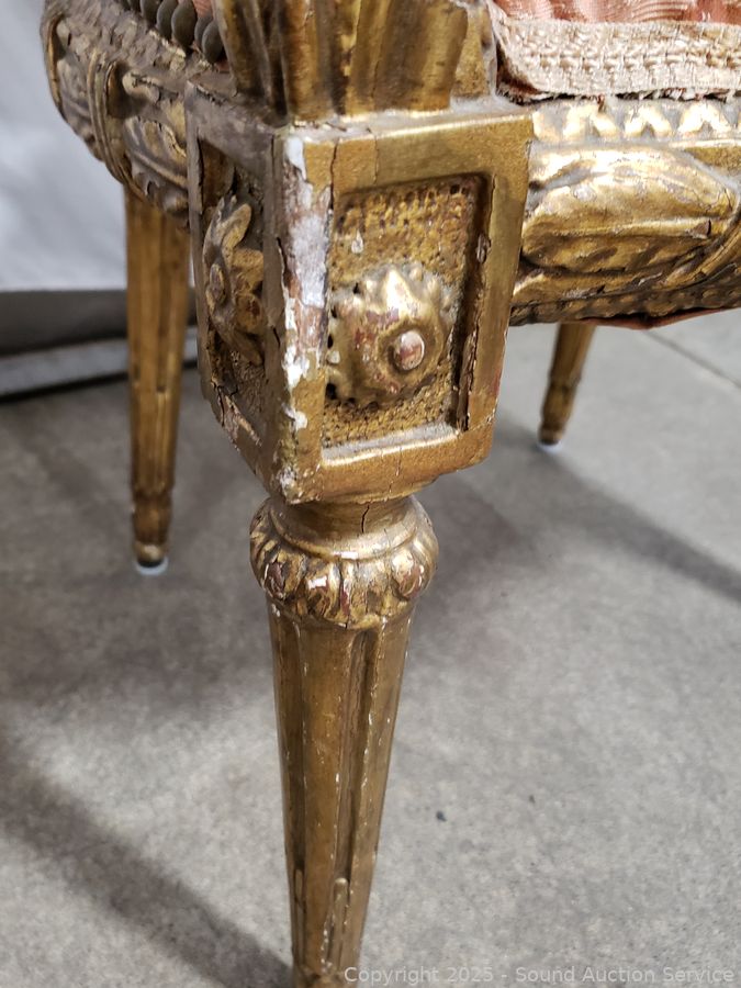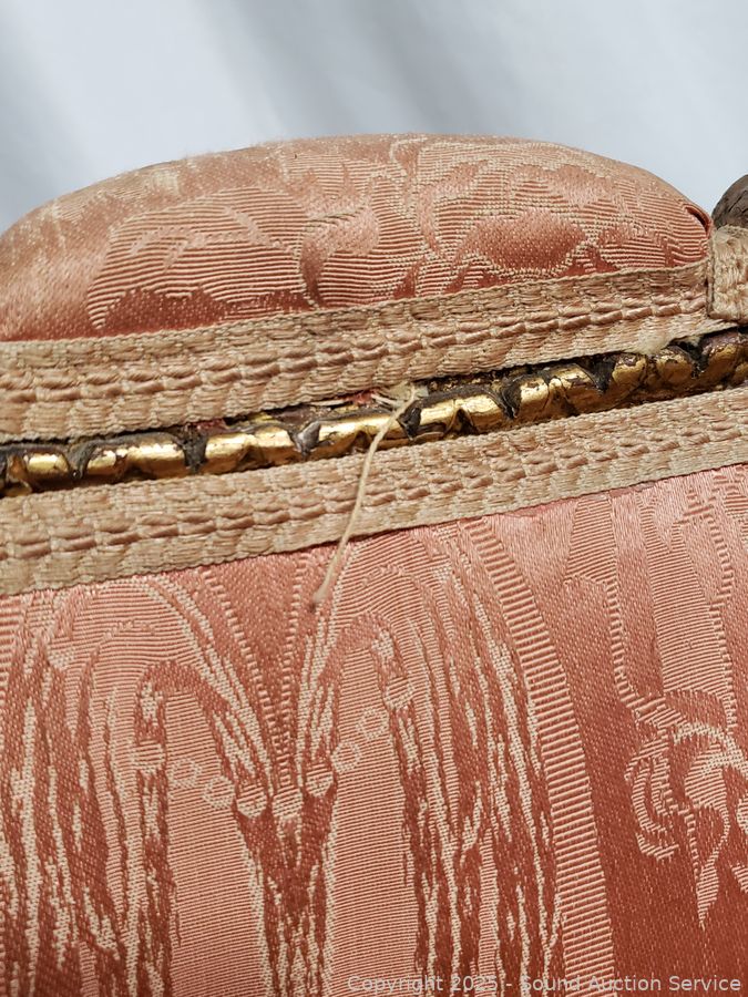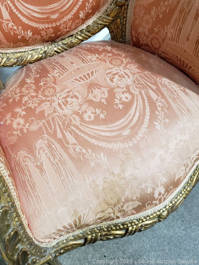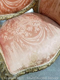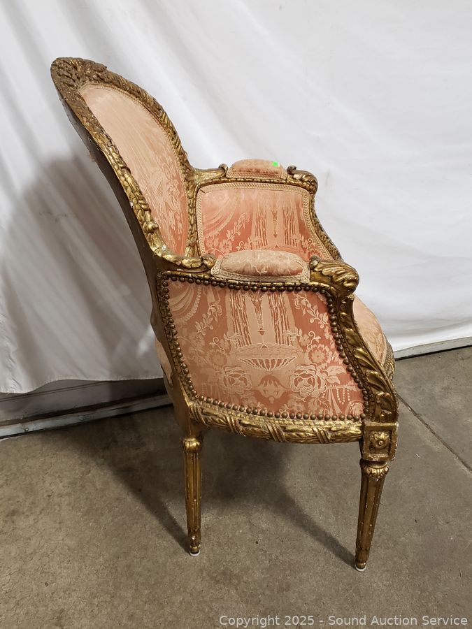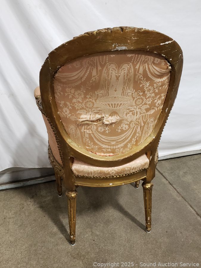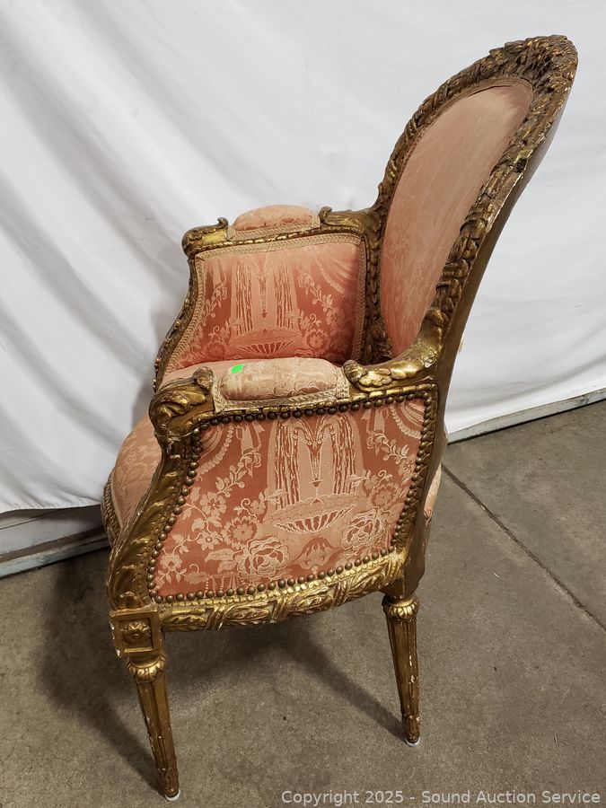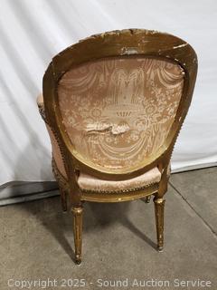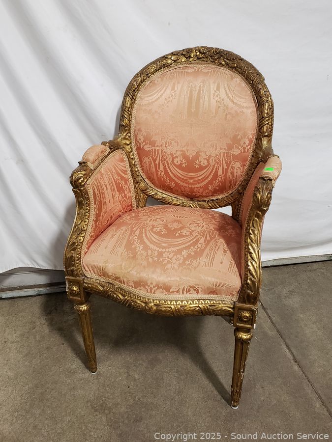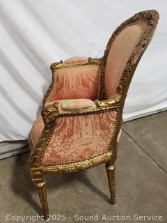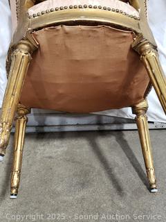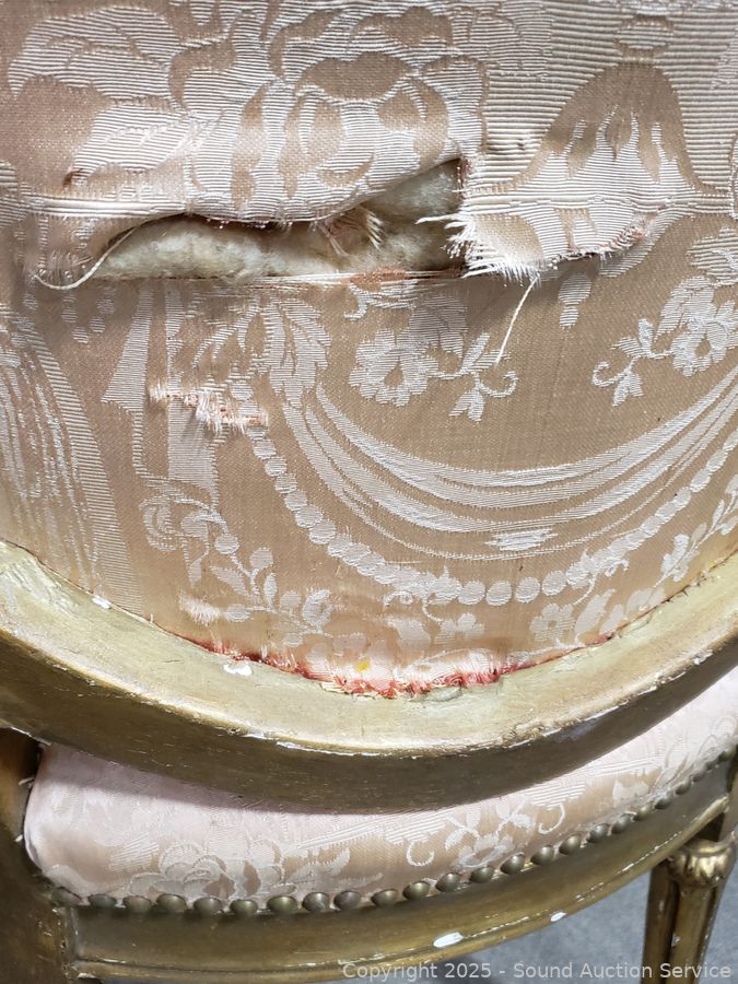 Lot #0067: Antique Louis XVI Style Gilded Frame & Pink Damask Armchair
