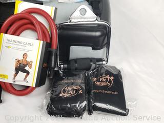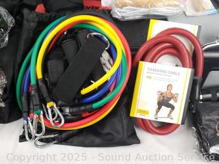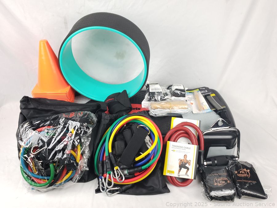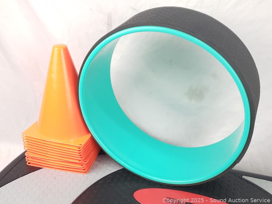 Small 7" cones, 12" wheel, resistant bands, 4" step. Refer to photos for lot contents, more details.