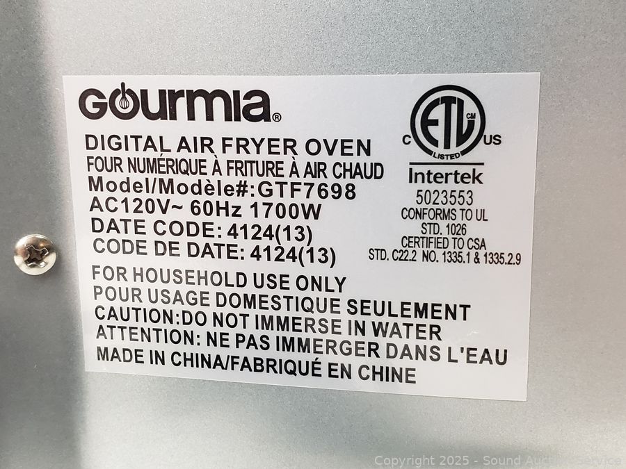 Lot #0103: Gourmia Stainless Countertop French Door Air Fryer