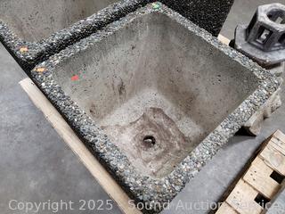 356 Lots including Concrete Planters, Benches, Fountains, Hutch, Patio Chairs, Sewing Fabrics, Supplies, Secretary Hutch, Antique Child’s Buggy, Vintage Sheraton Style Shield Back Chair, Antique Edison-Dick Mimescope, Santa Outfit, Granddaughter Clock, Artwork, Rugs, Trellises, Folding Tables, Lighting, Utility Shelves, Fitness Supplies, Kitchen Cookware, Health & Beauty Products, Household Goods, Trash Bags, Fans, Roller Skates, Cast-Iron Dachshund Boot Cleaner, Footwear, Personal Hygiene Products, CD’s, Literature & More!!!