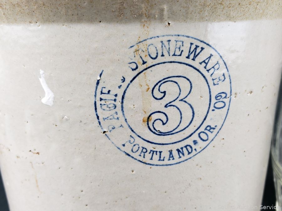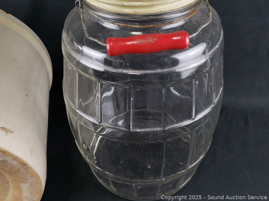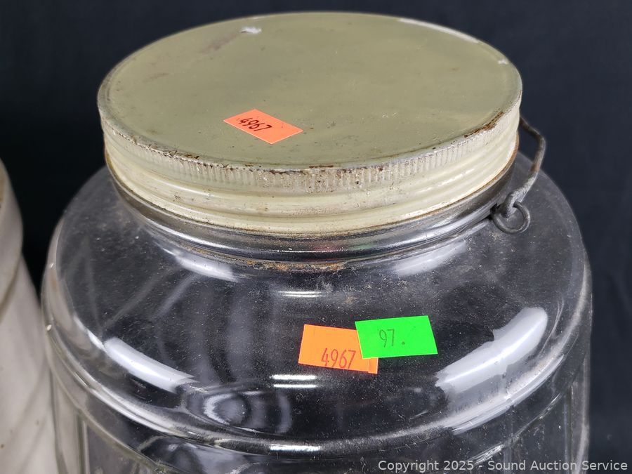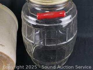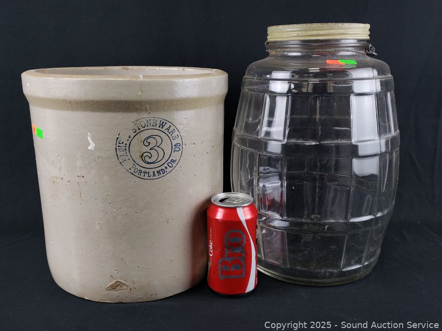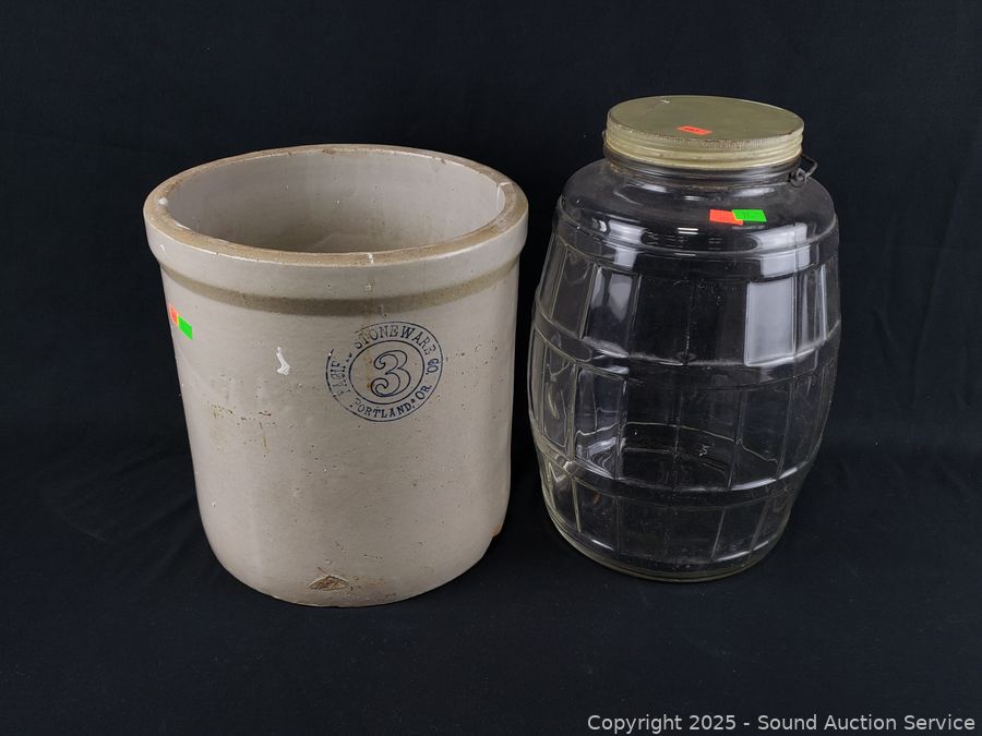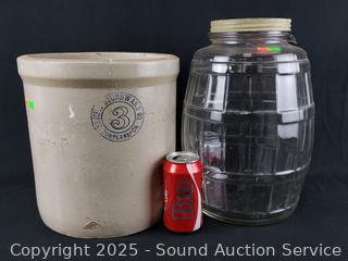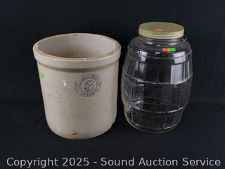 Lot #0097: Pacific Stoneware 3-Gallon Crock & Glass Jug