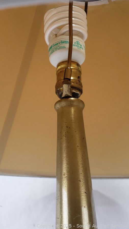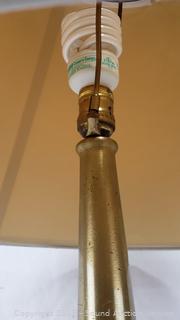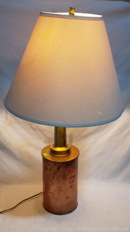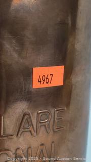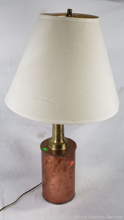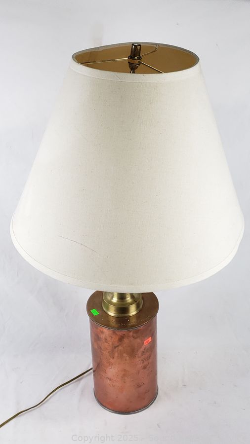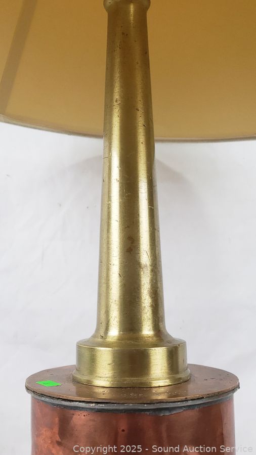 31" H x 18" Dia. Works. Some dent, dings, brass piece on top slides around.