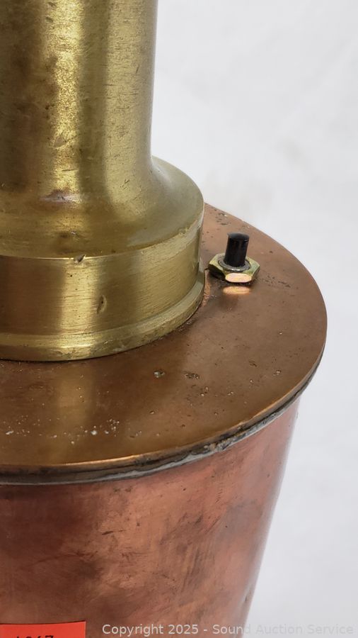 Lot #0006: Vintage Repurposed Copper & Brass Hand Red Flare Table Lamp