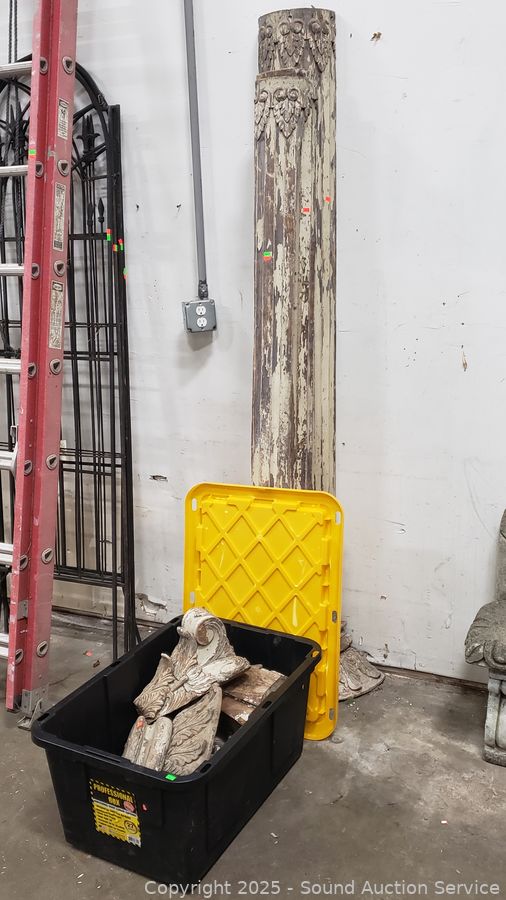 356 Lots including Concrete Planters, Benches, Fountains, Hutch, Patio Chairs, Sewing Fabrics, Supplies, Secretary Hutch, Antique Child’s Buggy, Vintage Sheraton Style Shield Back Chair, Antique Edison-Dick Mimescope, Santa Outfit, Granddaughter Clock, Artwork, Rugs, Trellises, Folding Tables, Lighting, Utility Shelves, Fitness Supplies, Kitchen Cookware, Health & Beauty Products, Household Goods, Trash Bags, Fans, Roller Skates, Cast-Iron Dachshund Boot Cleaner, Footwear, Personal Hygiene Products, CD’s, Literature & More!!!