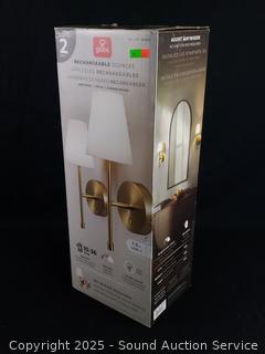 Lot #0180: 2 Globe Rechargeable Gold Finish LED Light Sconces