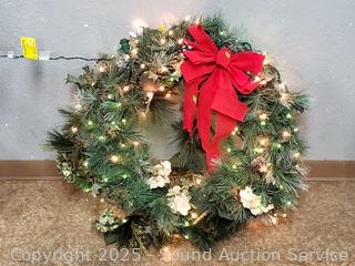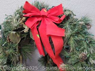 Lot #0257: 28" Artificial Pre-lit LED Wreath - Works