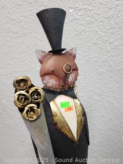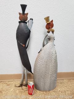 Lot #0291: 2pc Metal Art Fox Gentleman & Lady Sculptures