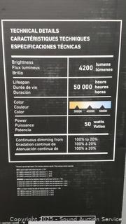 Integrated LEDs. 50W, 4200LM, 3000-5000K color. 0.6" x 12" x 48". Works. Don't see any issues.