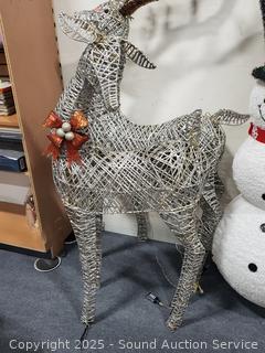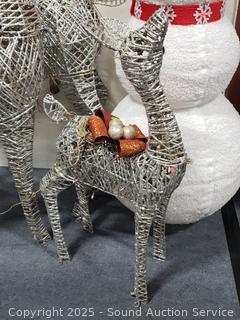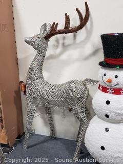 Lot #0019: 3 Large Silver Deer & 1 Snowman Wire Frame Lighted Yard Art Christmas Decor