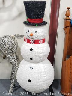 Deer 41" to 74" tall, Snowman 60" tall. Some light on little deer work, the rest lights are not working. Snowman is missing arms.