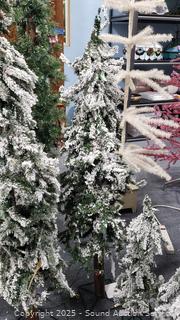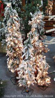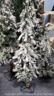 Lot #0031: 3 Lighted Yard Art Snowy Christmas Trees