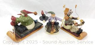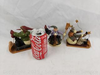 "Starlight Ride", "Perfect Accessories", "Snowman Riding on Sled" (missing something in its hand or broken). Don't see any other issues.