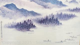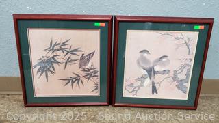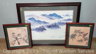 Lot #0245: 3pc Asian Bird & Fisherman Print? Artwork