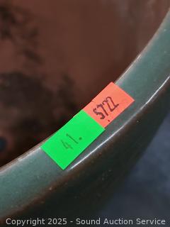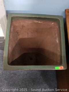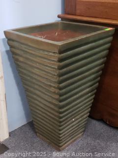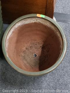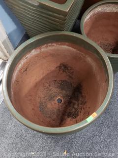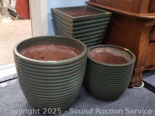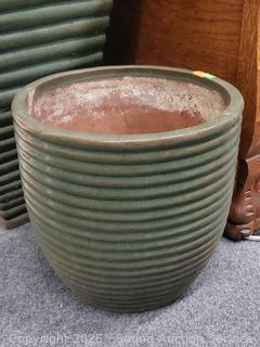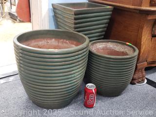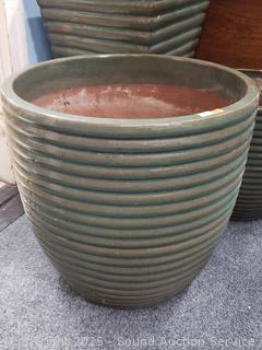 Lot #0041: 3pc Green Glazed Ribbed Pottery Planter Pots