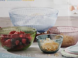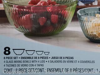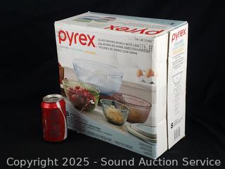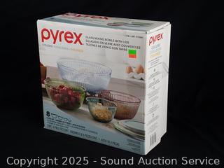 Lot #0219: 4 Pyrex Glass Mixing Bowls w/4 Lids